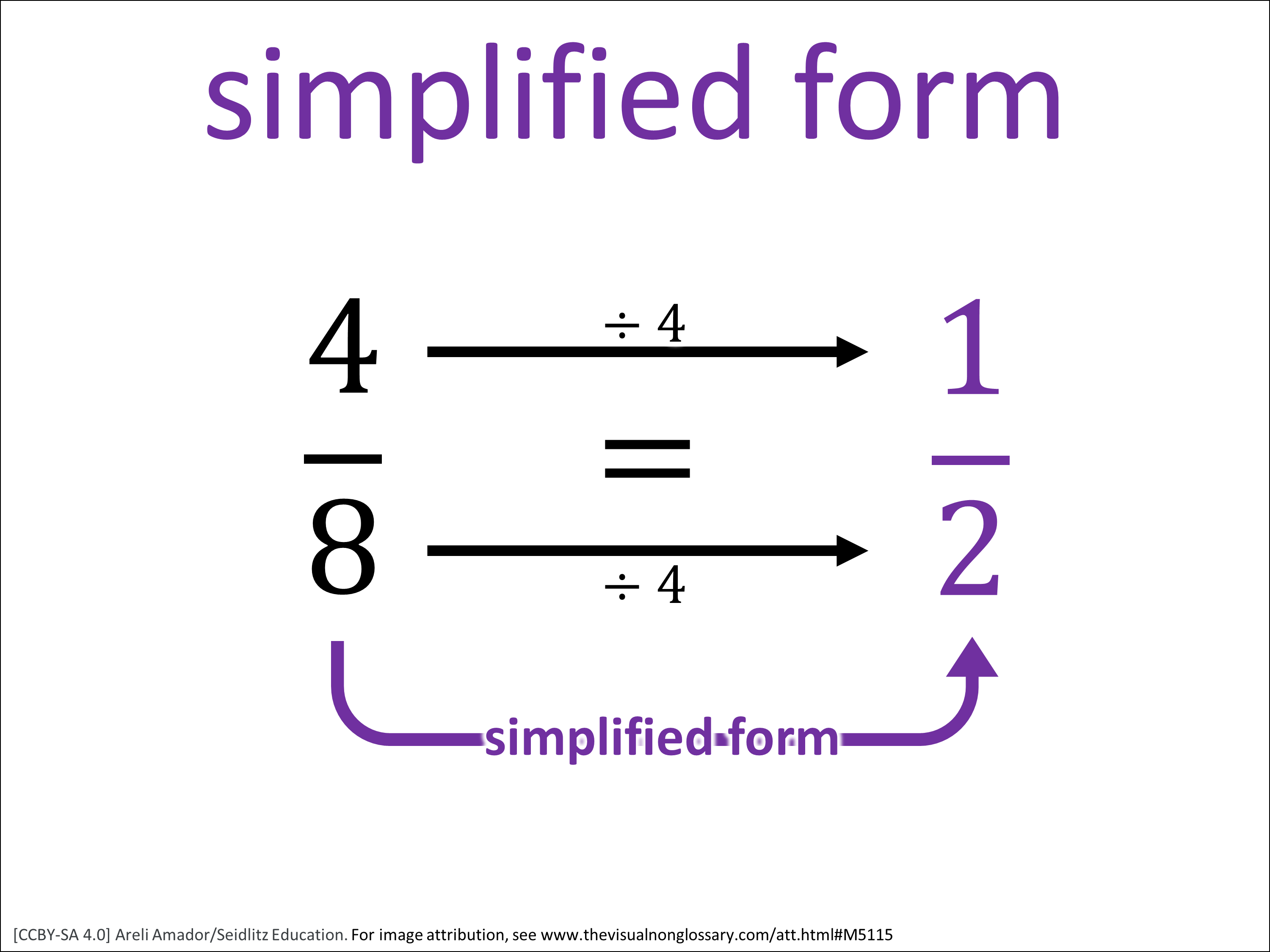 The simplified form is the version of a fraction that has the smallest numerator and denominator possible while still showing the same value.